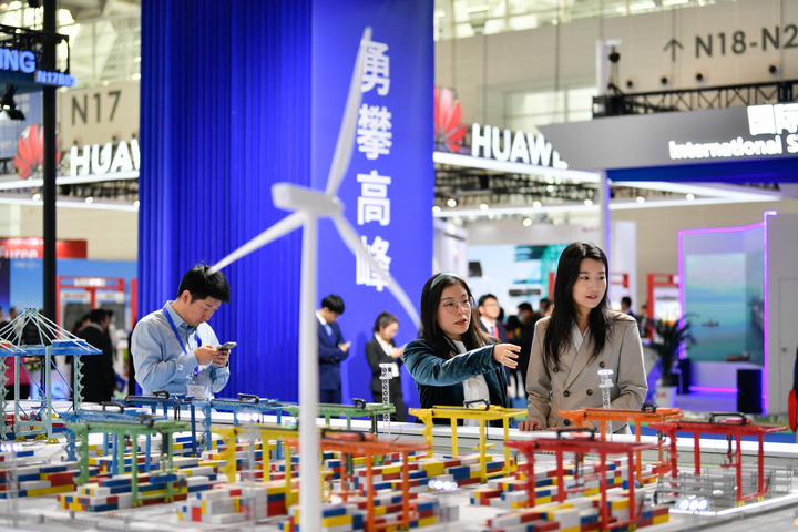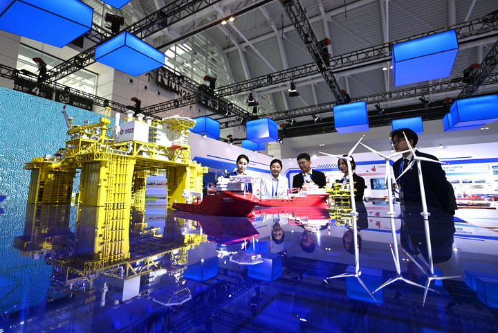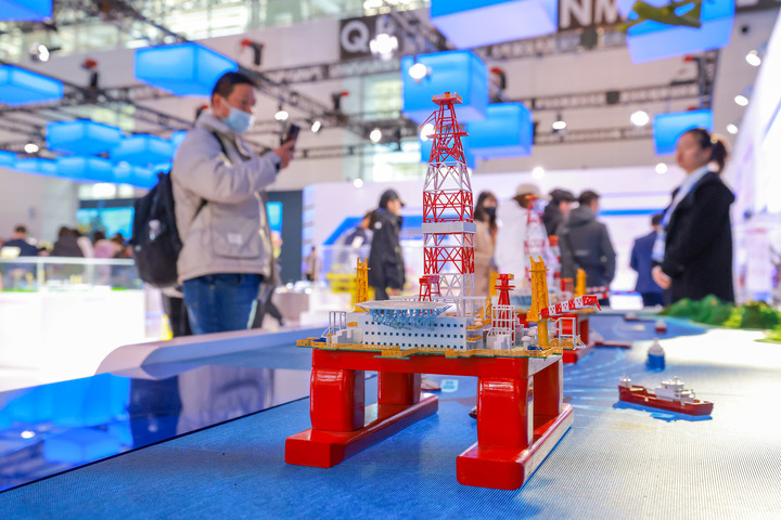 11月17日,观众在参观海工装备模型。新华社记者 孙凡越 摄