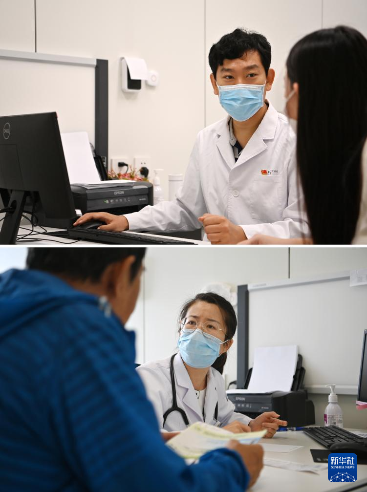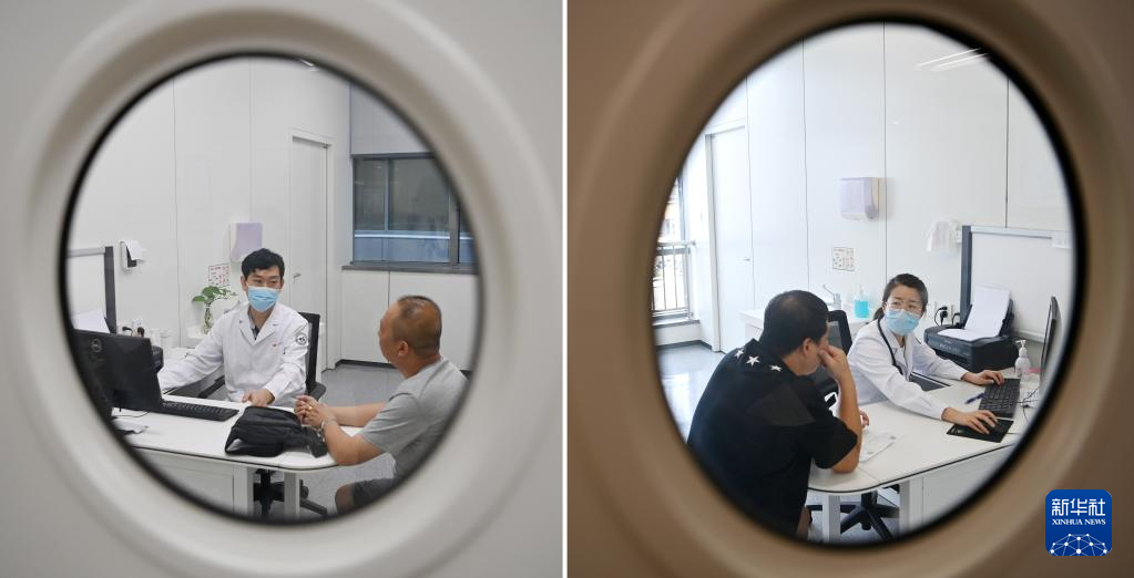 拼版照片,上图为:8月18日,宋立君在天津市第一中心医院(水西院区)坐诊;下图为:8月16日,王丽在天津市第一中心医院(水西院区)坐诊。新华社记者 李然 摄pagebreak