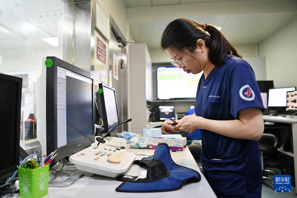 王丽在天津市第一中心医院(复康路院区)做术前准备(8月15日摄)。新华社记者 李然 摄