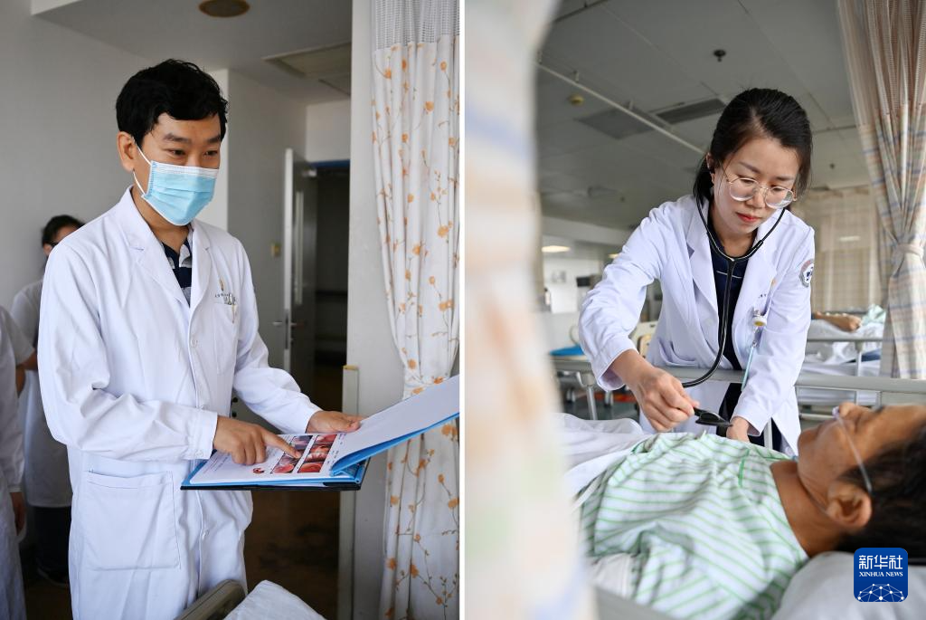 拼版照片,左图为:8月16日,宋立君在天津市第一中心医院(复康路院区)查房;右图为:8月15日,王丽在天津市第一中心医院(复康路院区)查房。新华社记者 李然 摄pagebreak