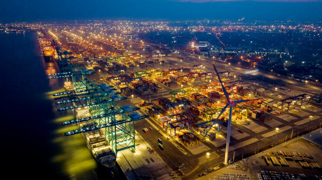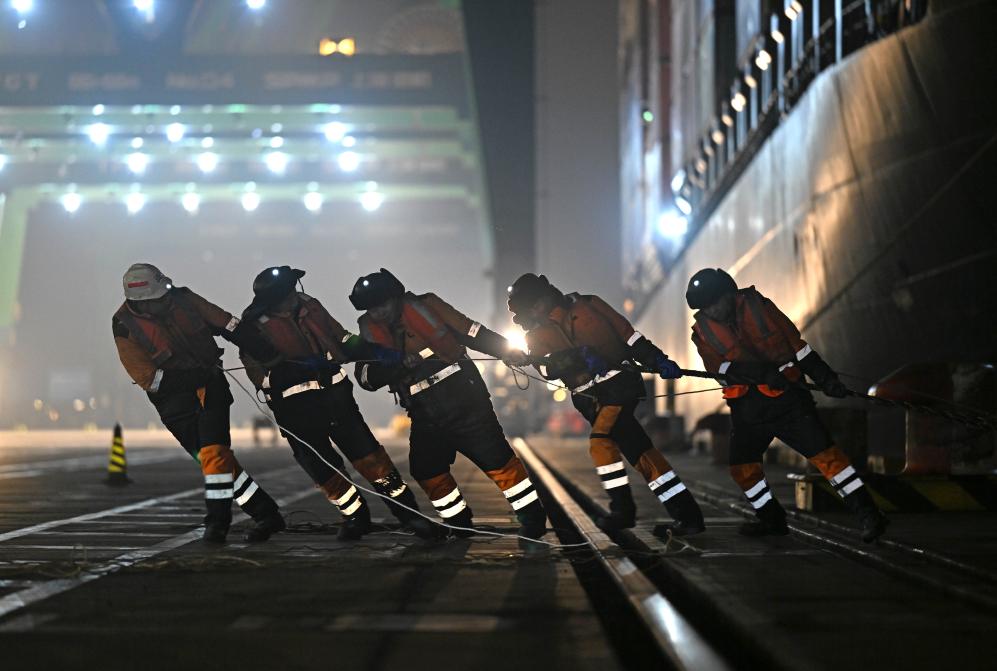 2024年1月16日晚11时许,海风清冷,寒夜里的天津港依然灯火通明,忙碌如常。