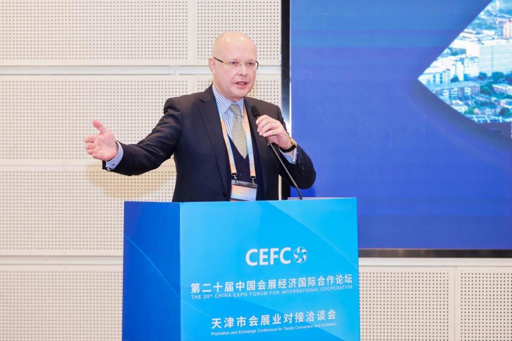 苗瑞卿参加的CEFCO论坛由中国贸促会与国际展览业协会、国际展览与项目协会、独立组展商协会和国际大会及会议协会等4家国际会展组织共同主办,吸引了来自20个国家和地区的600余位会展业人士来天津参会。