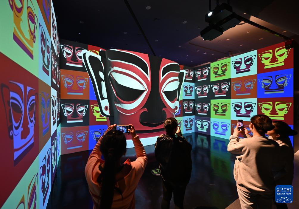 4月22日,观众在观看“一醒惊天下·三星堆沉浸式光影艺术展”。新华社记者 赵子硕 摄pagebreak