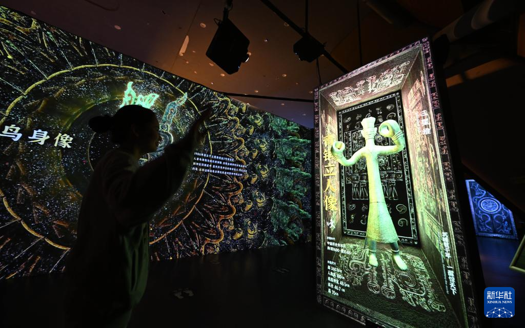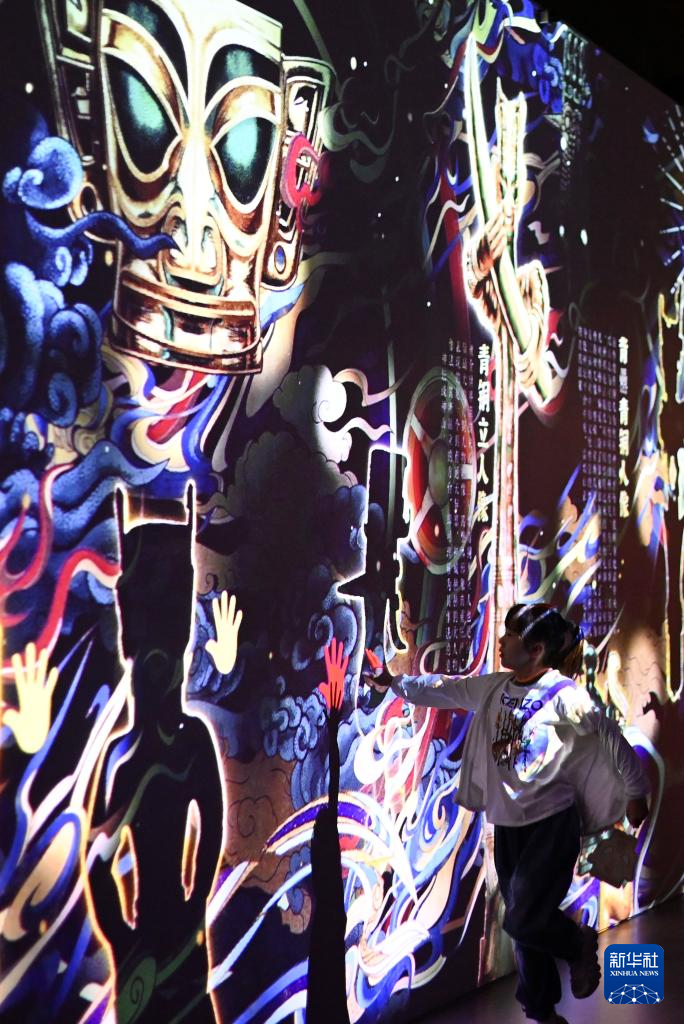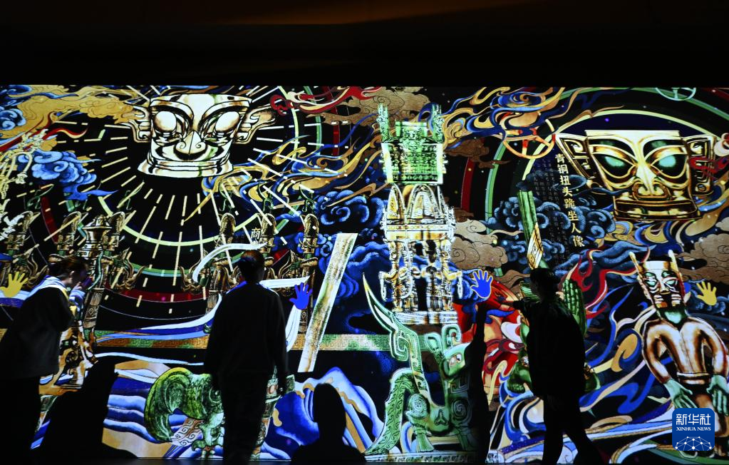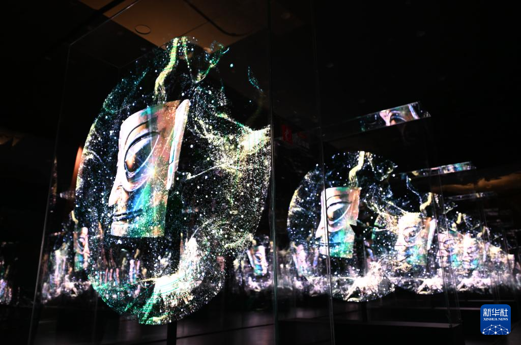这是“一醒惊天下·三星堆沉浸式光影艺术展”中设置的裸眼全息展区(4月22日摄)。新华社记者 赵子硕 摄