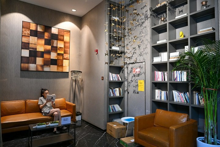这是天津河东区天住领寓(棉三店),一名入住人才公寓的青年在公共休闲区读书。新华社记者 孙凡越 摄