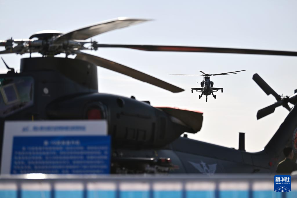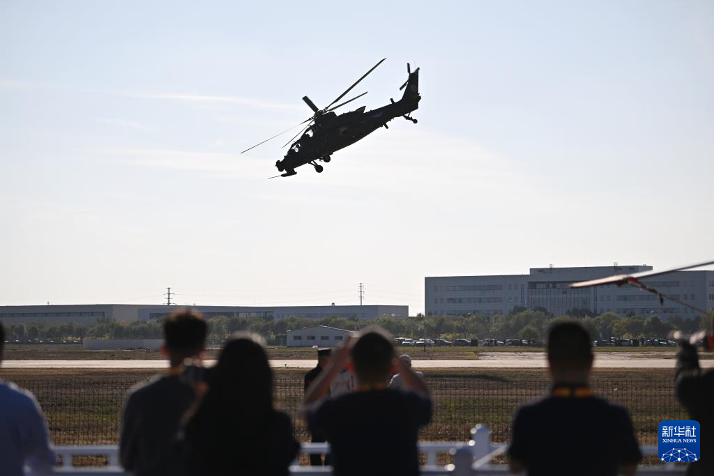 10月14日,参加飞行表演的直升机进行演练。新华社记者 孙凡越 摄pagebreak