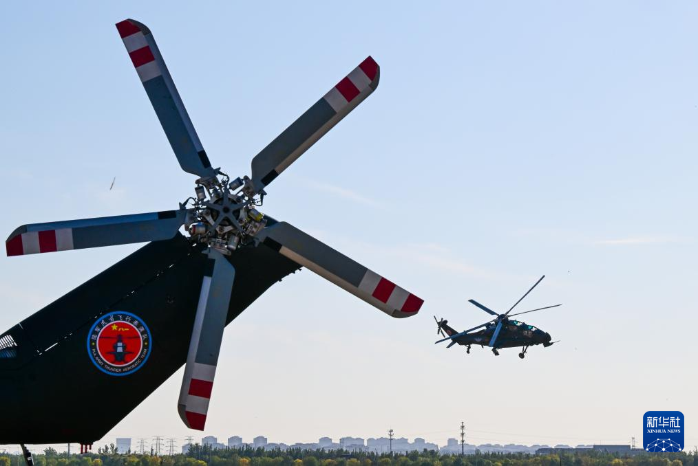 10月14日,参加飞行表演的直升机进行演练。新华社记者 李然 摄pagebreak
