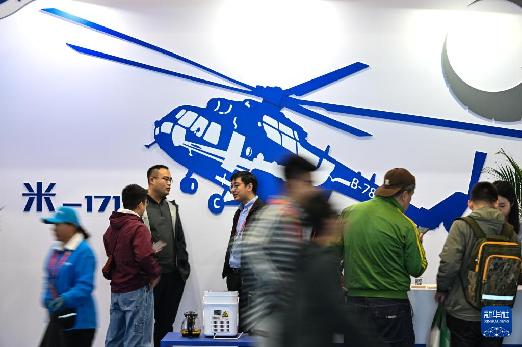 10月16日,观众在天津直博会直升机馆内参观。新华社记者 孙凡越 摄