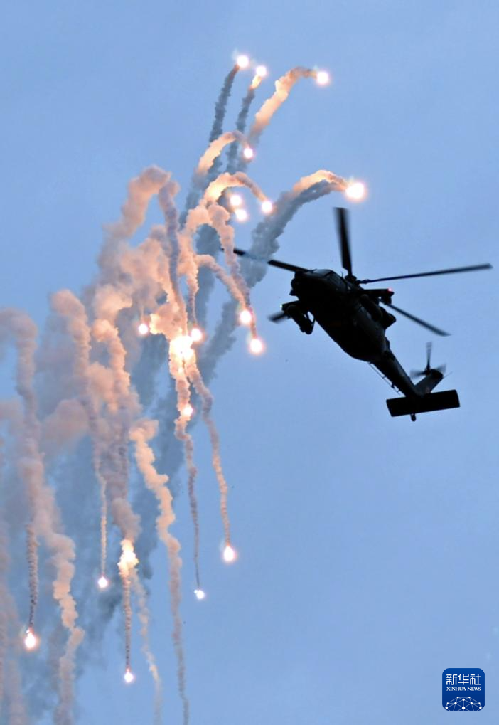 10月17日,直-20T直升机在进行飞行表演。新华社记者 赵子硕 摄pagebreak