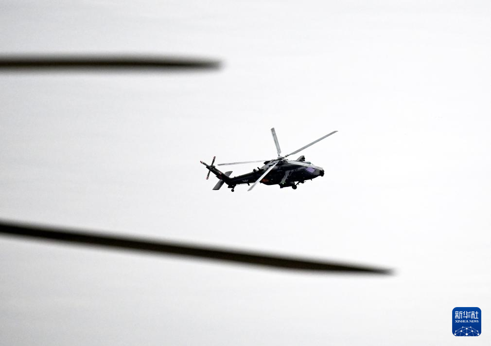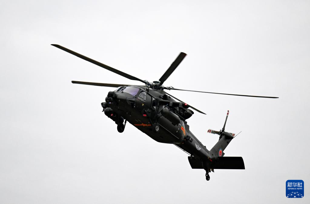 10月17日,直-20T直升机在进行飞行表演。新华社记者 赵子硕 摄