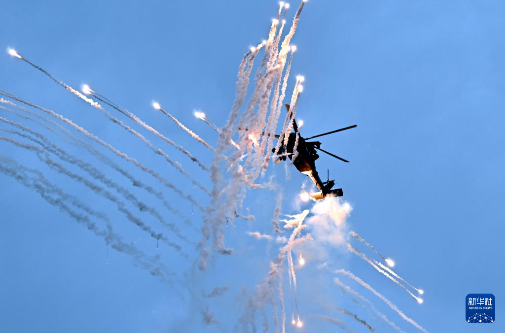 10月17日,直-20T直升机在进行飞行表演。新华社记者 李然 摄