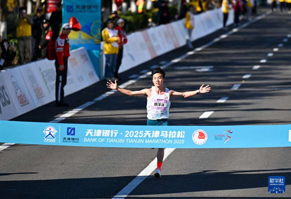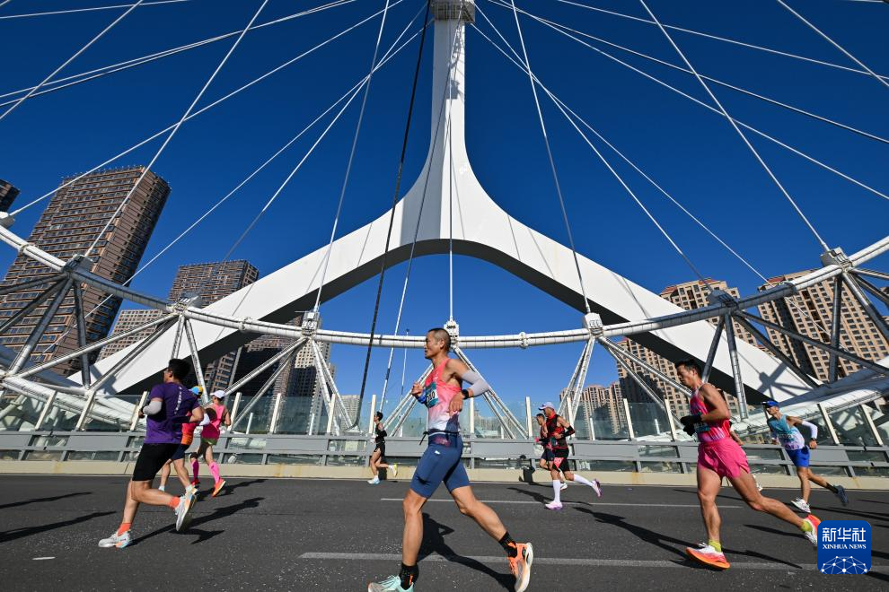 当日,2025天津马拉松鸣枪开跑。赛事吸引了约三万名跑者参加。