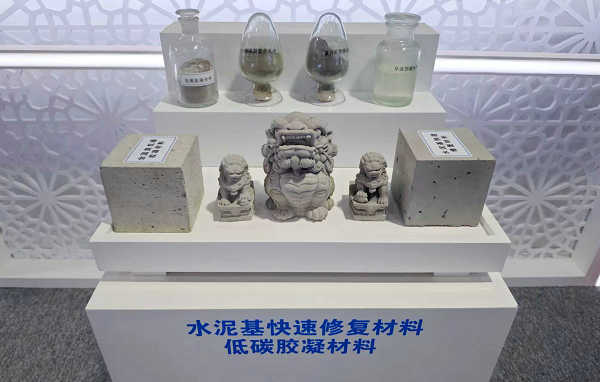 在低碳建材领域,全固废低碳胶凝材料堪称明星展品,以钢渣、矿渣等工业固废为原料,采用免烧工艺,二氧化碳排放量仅75千克/吨,较传统水泥降低九成,还具备水化热低、耐侵蚀和成本低等优势。(钟陆轩摄)