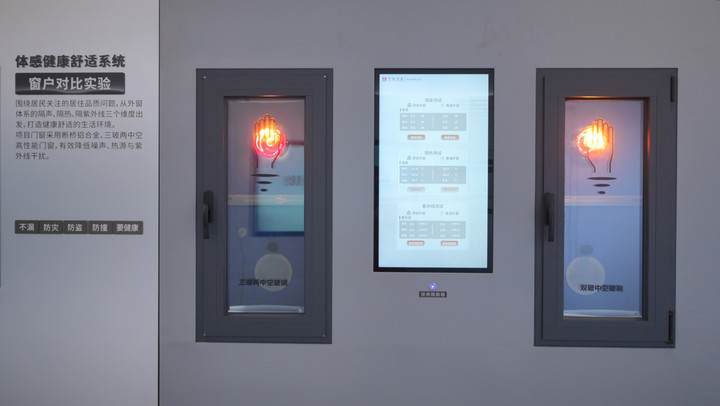 房屋窗户和楼板的防噪音性能也是影响居住体验的一个重要方面。记者在现场看到两组降噪比对实验:一组是外窗降噪实验,最新推出的“三玻两中空”优质窗户,比普通窗户在隔音、隔热、隔紫外线三个维度上均实现性能大幅跃升;楼板隔音性能关系生活舒适度和邻里关系,企业与清华大学建筑声学实验室合作进行楼板降噪实验,新型楼板增加橡胶隔声减震垫,形成隔音屏障,比普通楼板噪音阻隔性能有大幅提升,隔音效果更好。