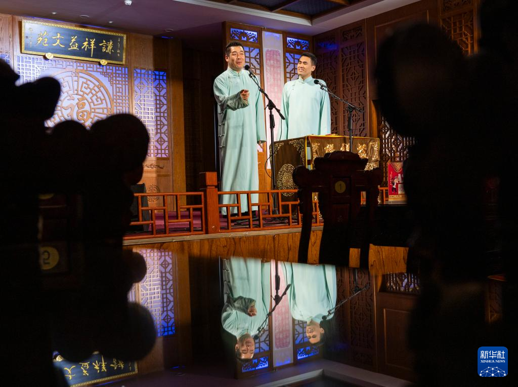 12月4日,相声演员在天津市红桥区谦祥益相声茶馆表演。新华社记者 傅天 摄pagebreak