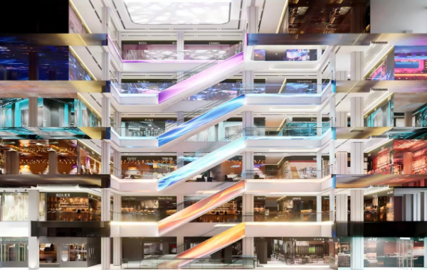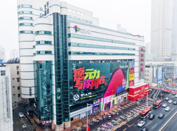 硬件更新,分阶段、分步骤实施商场内部改造升级。吉利大厦已走过32年时光,内部设备老化程度严重,为紧跟时代消费步伐,增强商场消费活力,作为对吉利大厦的核心记忆点之一“剪刀梯”目前已全部完成更换,重新运行承载顾客温情时光,同时,通过楼宇外檐主题贴画、光电屏门头以及场内二次元主题街区的射灯投影、彩绘墙、人形立牌等美陈设计,提供更优质舒适的购物体验,打造次元“吃谷人”沉浸式的消费体验场景。
