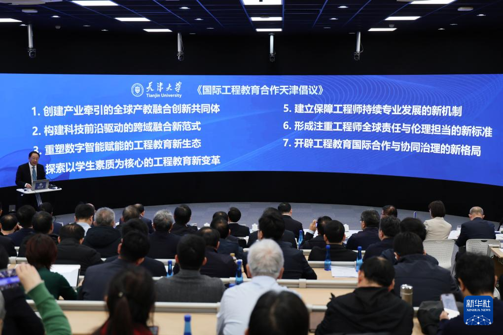 2025年12月31日,天津大学新工科教育中心主任顾佩华在会上发布《国际工程教育合作天津倡议》。新华社记者 李然 摄pagebreak