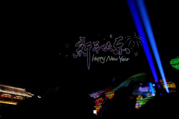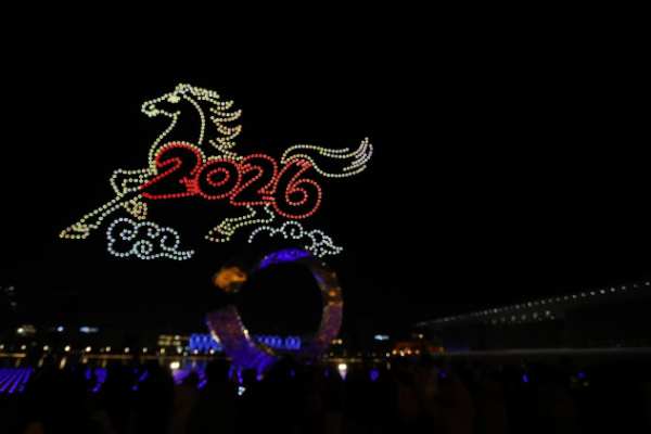 岁序交替,华灯初上。2025年12月31日跨年夜,“津翼闪耀”城市级无人机跨年表演IP在天津上演。3000架无人机凌空而起,在天津文化中心、杨柳青古镇、水西公园三地同步呈现光影盛宴,以科技之光绘就城市画卷,陪伴市民游客辞旧迎新,共赴2026新程。
