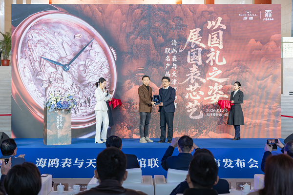 1月7日,海鸥表与天津博物馆联名产品上市发布会在天津博物馆举行。会上,双方联合打造的“镇馆之宝”非遗工艺银雕机械腕表正式亮相。此次发布会的成功举办,标志着天津工业、文博两大城市名片深度战略合作开启,为津派文化传承创新及文旅商融合高质量发展注入新动能。