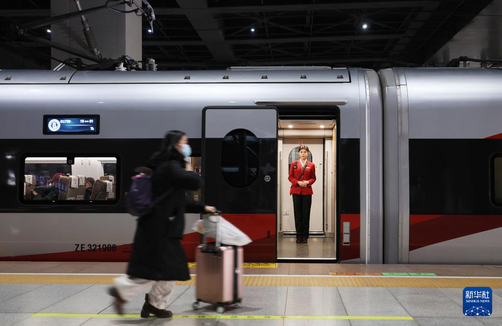 1月26日,旅客乘坐G1739次列车。新华社记者 李然 摄