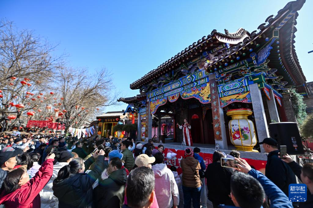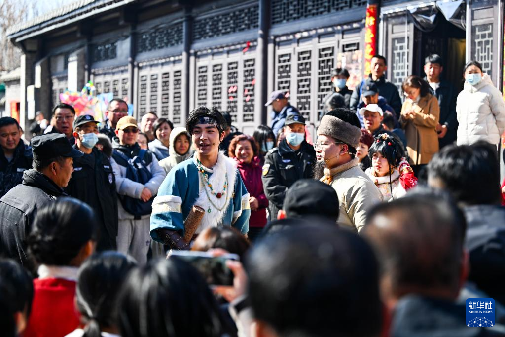 2月22日,游客在杨柳青古镇观看演出。新华社记者 赵子硕 摄pagebreak