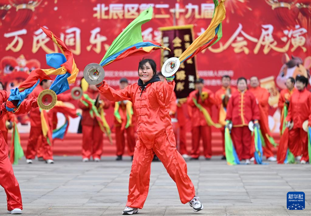 2月28日,天津市北辰区第二十九届“万民同乐大联欢”花会展演活动在双街镇龙顺文化体育产业园举行。活动现场,旌旗招展、鼓乐齐鸣,来自京津冀三地的十多支展演队伍联袂献艺,展现传统民俗文化魅力。