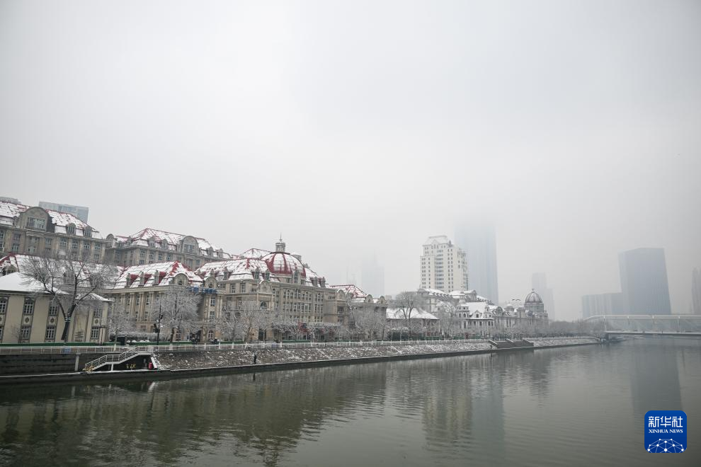 3月2日拍摄的雪中的天津海河沿线建筑。新华社记者 孙凡越 摄