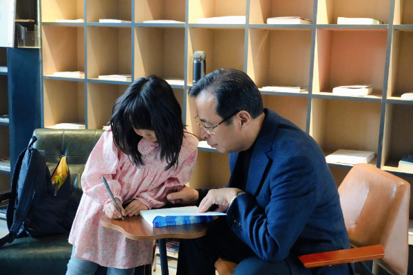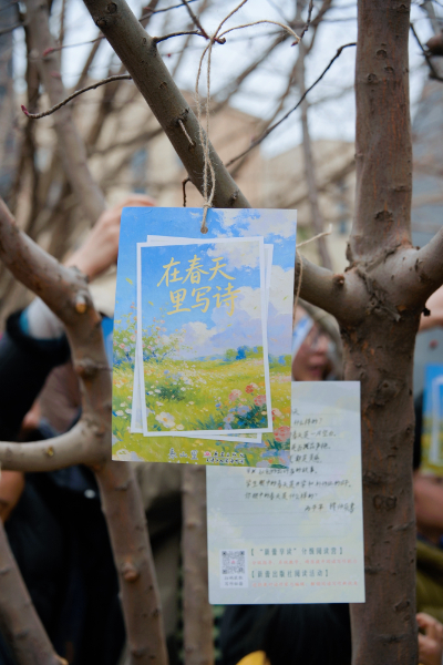 孩子们踏着春光在山野赏春探秘,亲手在农场劳作收获惊喜,午后便围坐于书店中,把一天的所见所感化作灵动诗句——“五瓣桃花像灵动的少女,风吹过来,裙摆舞动”“春天里的绿草,绿得清澈人心”“花瓣像月亮挂在树上”,每一句都稚嫩纯粹、满是童真。作家老藤现场逐一点评、悉心鼓励,让文学的种子在春日暖阳里,悄悄扎根孩子们的心底。