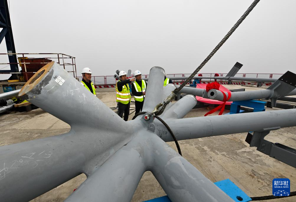 3月28日,天津“117项目”的菱形钢结构部件准备开始吊装。新华社记者 赵子硕 摄