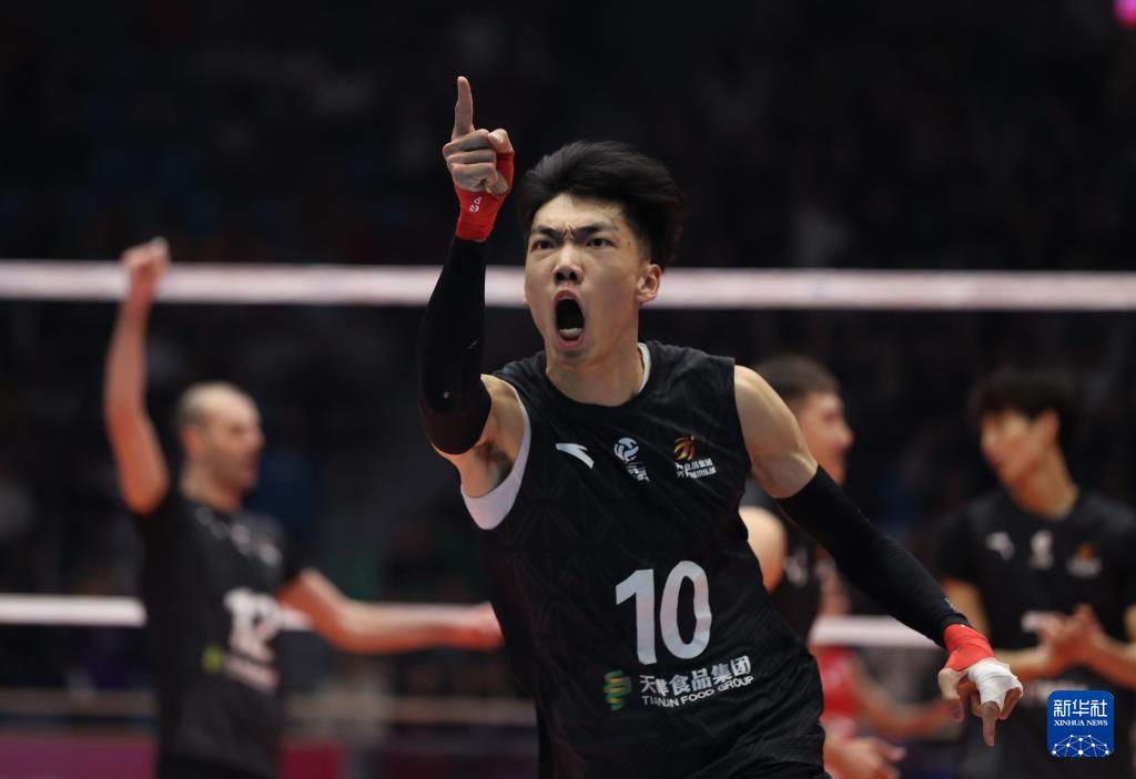 3月29日,在2025-2026赛季中国男子排球超级联赛总决赛冠亚军决赛首回合比赛中,天津食品集团队主场3比2战胜保定沃隶队。