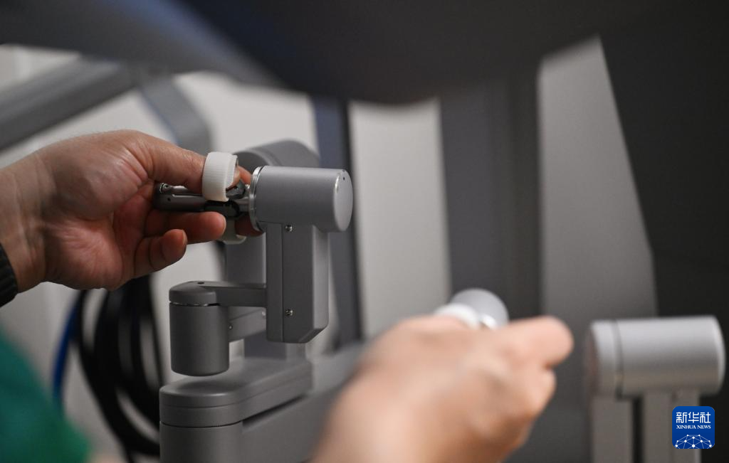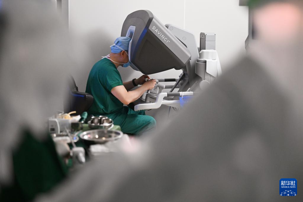 在医院手术室,医生端坐于操控台前,双眼紧盯高清成像屏幕,双手灵活操控手柄,通过床旁机械臂,在患者体内完成精准操作。