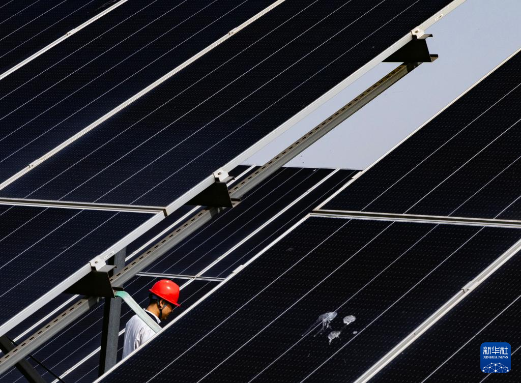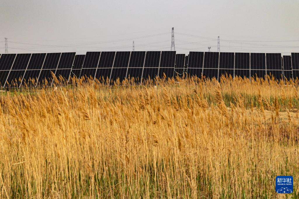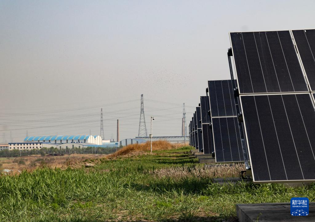4月23日拍摄的天津滨海新区循环经济产业园内的光伏发电项目。新华社发(兰红光摄)