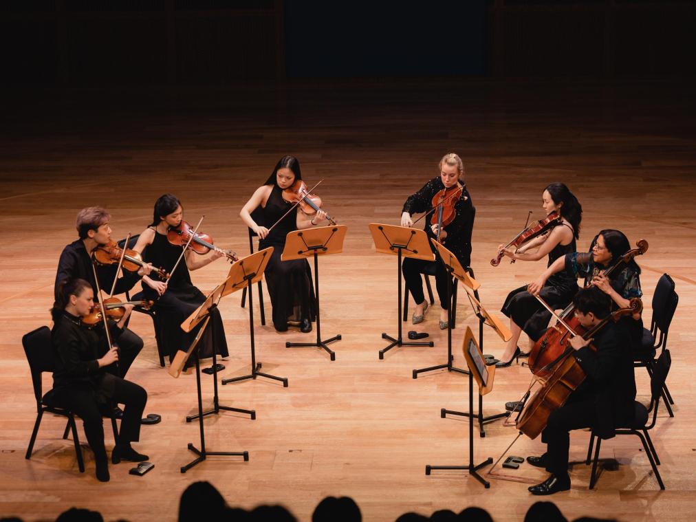 夜幕降临,海河畔的天津茱莉亚学院演奏厅灯光渐次亮起。弦声悠扬,茱莉亚弦乐四重奏以细腻而饱满的音色,奏响跨越时空的乐章,旋律在穹顶间回荡,久久不散。