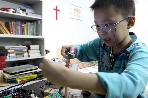 小证恩有一个特点,就是总爱问“为什么”。他看到路边的叔叔正在修车,就会问一问汽车的原理,看到小区的电工师傅,就要问一问电压的原理……许多大人都觉得他的问题太多。于是妈妈跟他说:“你的问题太专业了,如果想知道的话就去图书馆查查资料吧。” ......