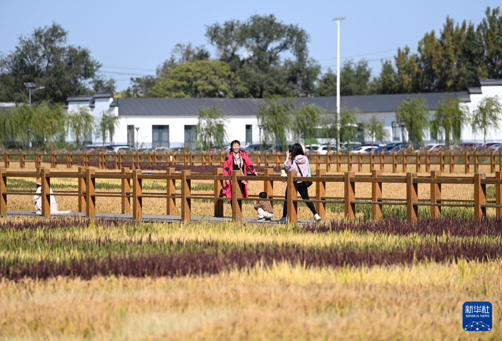 10月14日,游客在天津市津南区小站镇会馆村小站稻核心种植区内游览。新华社记者赵子硕摄pagebreak