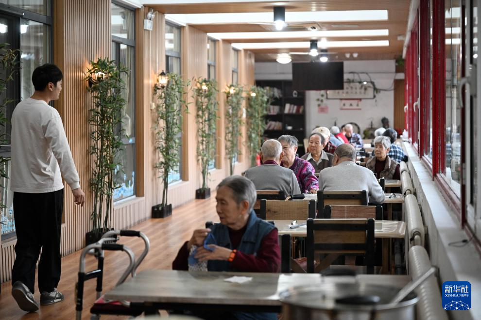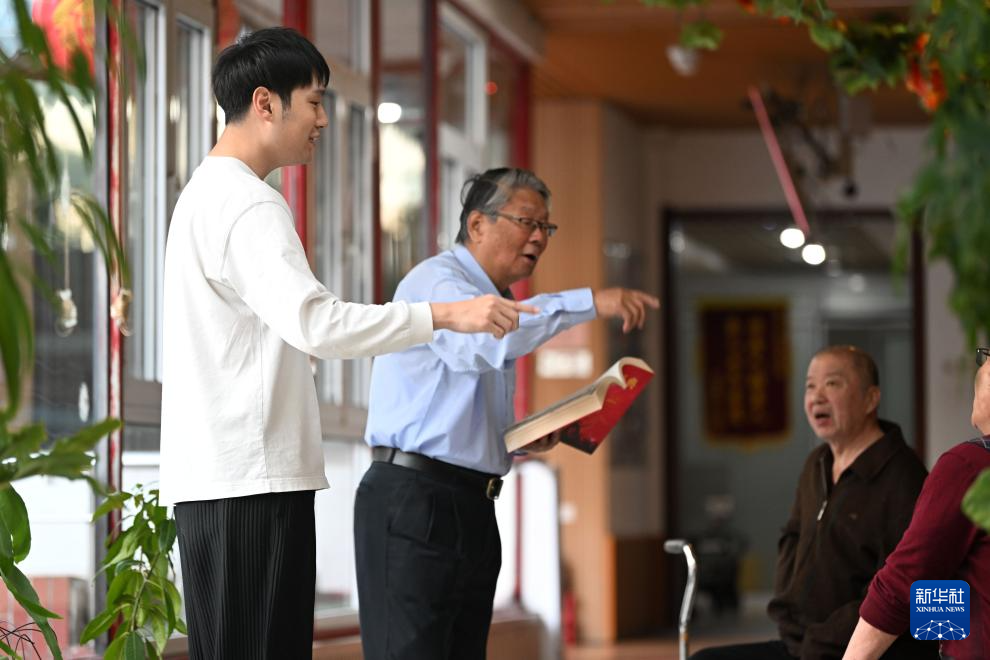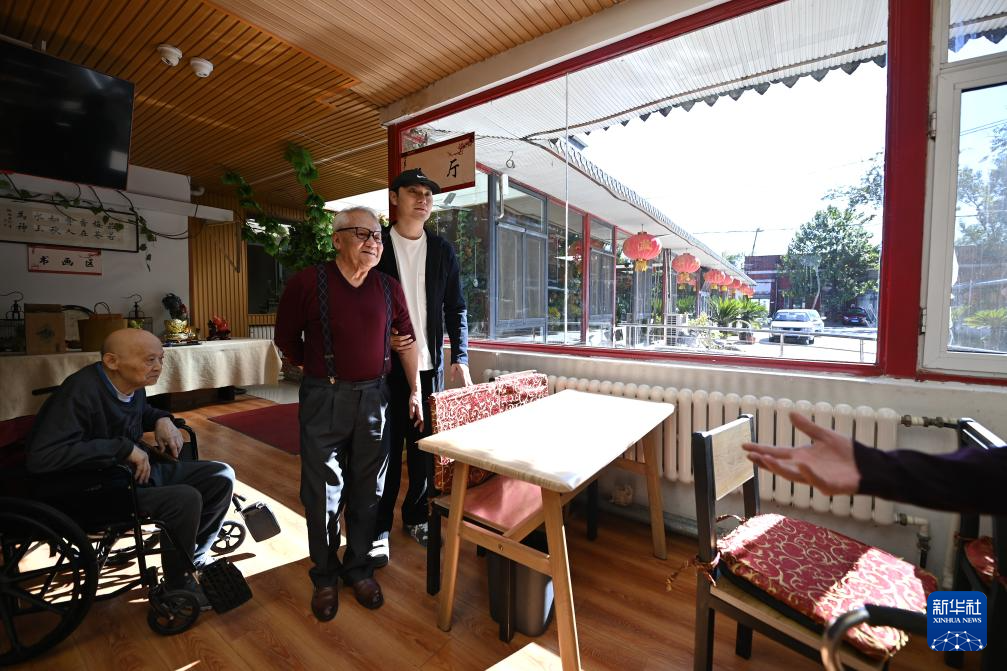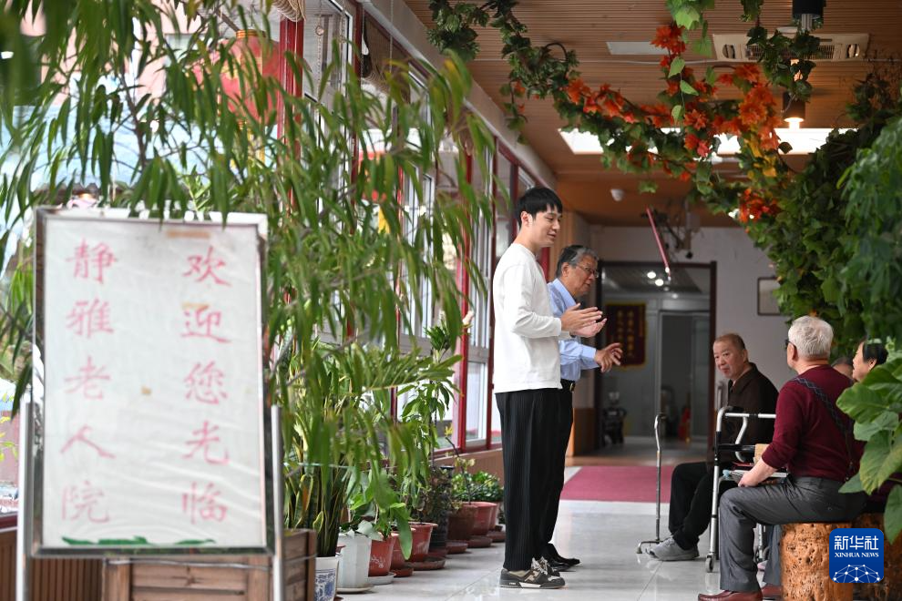 陈卓在静雅老人院进行陪护工作(10月20日摄)。新华社记者李然摄pagebreak
