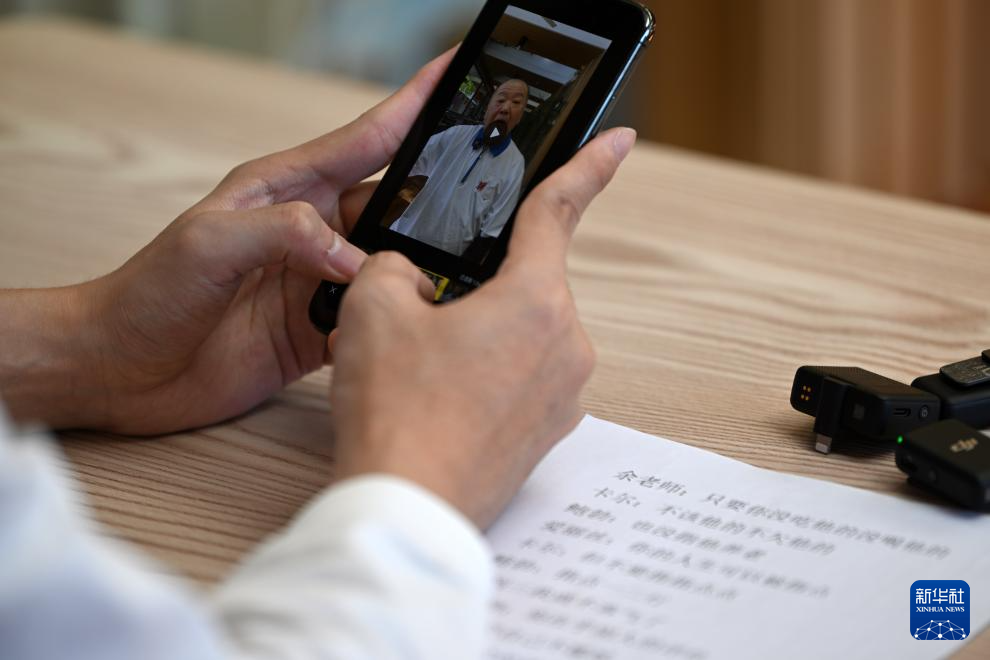 陈卓在静雅老人院用手机剪辑视频(10月20日摄)。新华社记者李然摄pagebreak