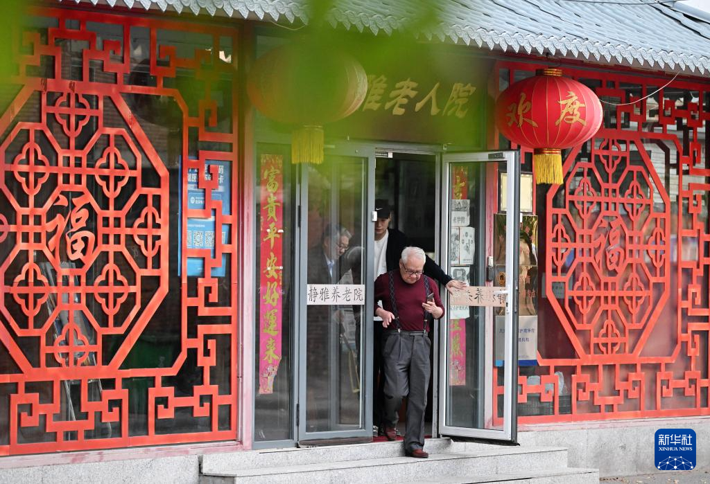 在静雅老人院门口,陈卓准备和两位老人外出(10月21日摄)。新华社记者李然摄pagebreak