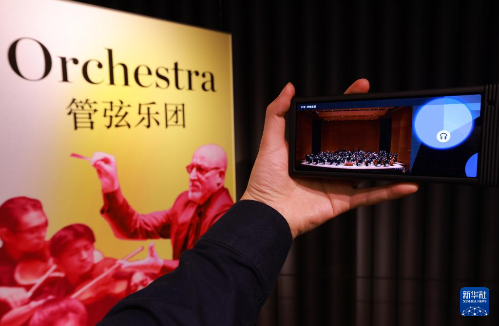 10月25日,观众在茱莉亚幻想空间内手持互动体验装置聆听古典戏剧。新华社记者 孙凡越 摄