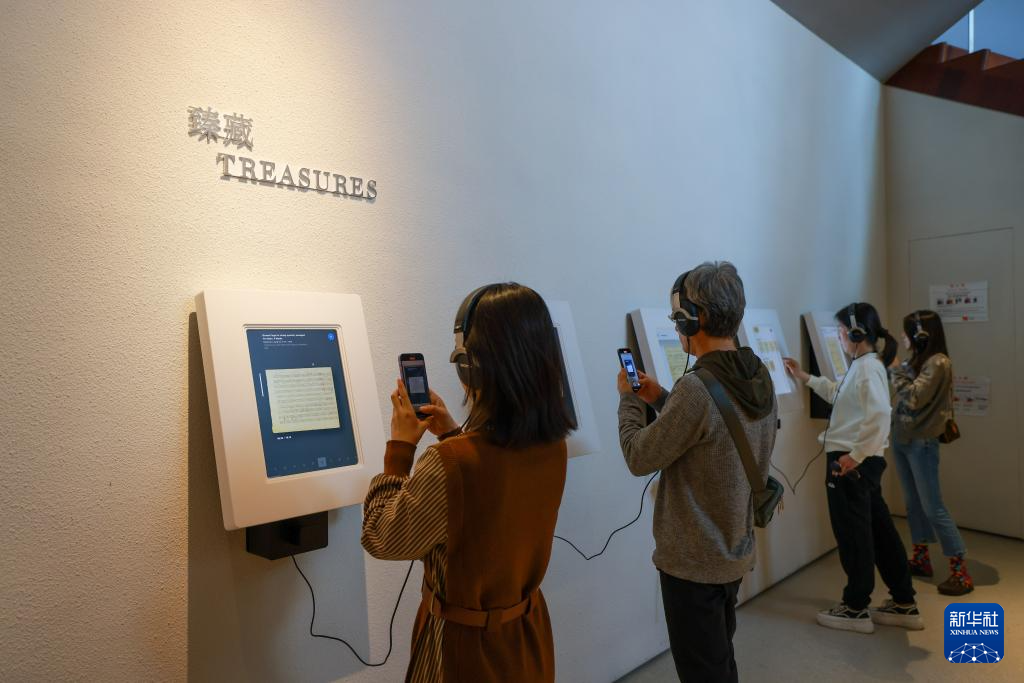 10月25日,观众在茱莉亚幻想空间内“臻藏”展区聆听录音。新华社记者 孙凡越 摄pagebreak