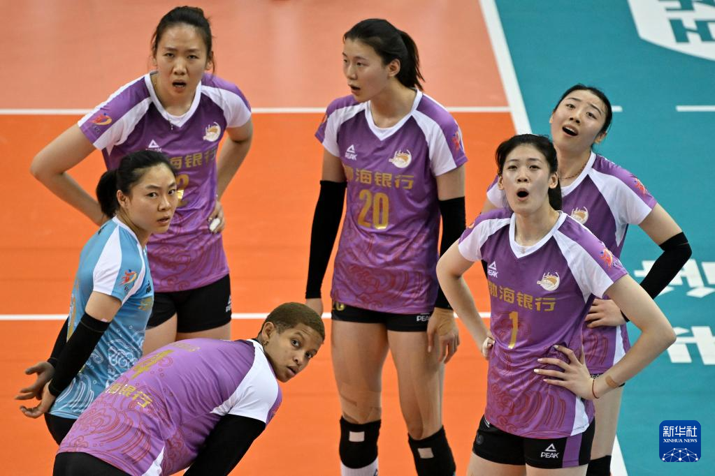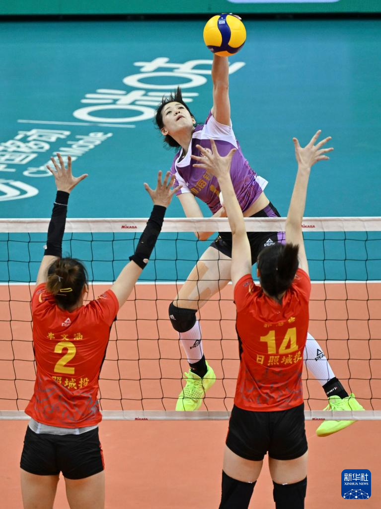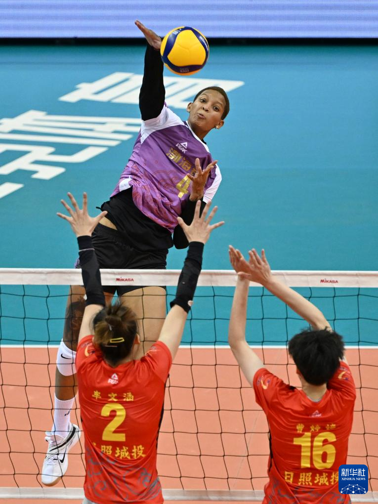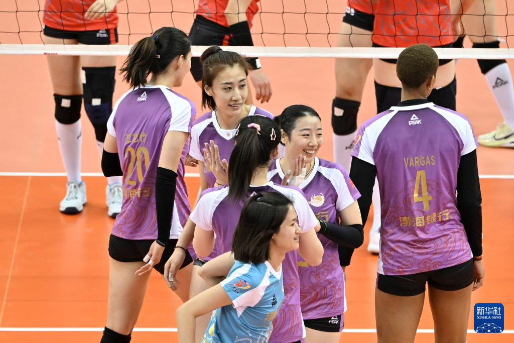 当日,在2023-2024中国女子排球超级联赛第一阶段小组赛A组比赛中,天津渤海银行队以3比0战胜山东日照钢铁队。pagebreak