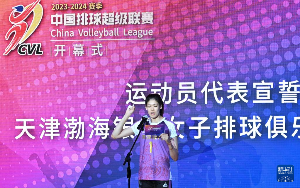 11月4日,运动员代表、天津渤海银行队球员李盈莹在赛前举行的联赛开幕式上宣誓。新华社记者 孙凡越 摄pagebreak
