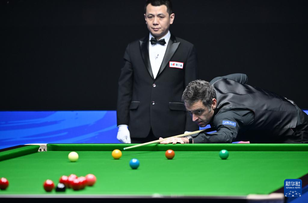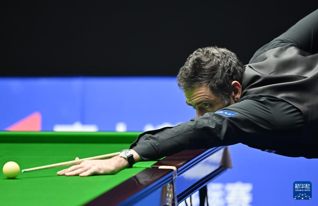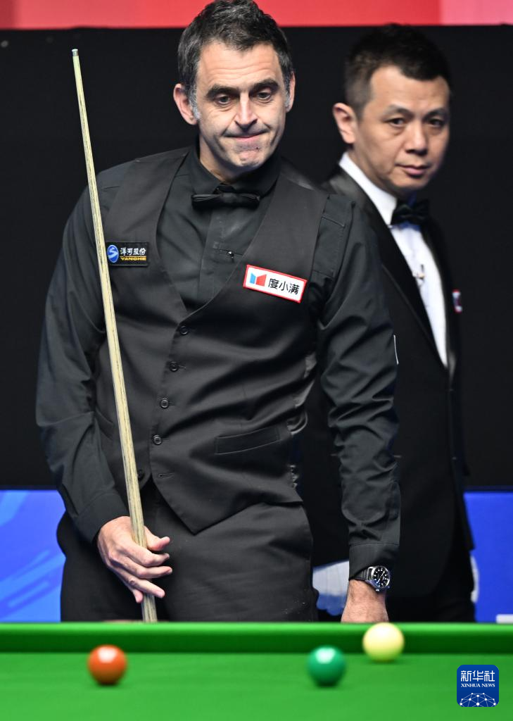11月11日,罗尼·奥沙利文(右)在比赛中。新华社记者 李然 摄
