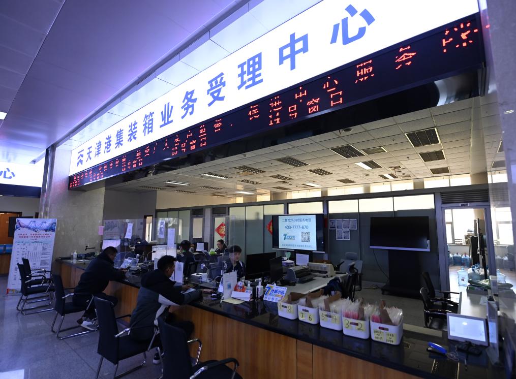 11月13日,客户在天津港集装箱业务受理中心办理货运业务。新华社记者 赵子硕 摄