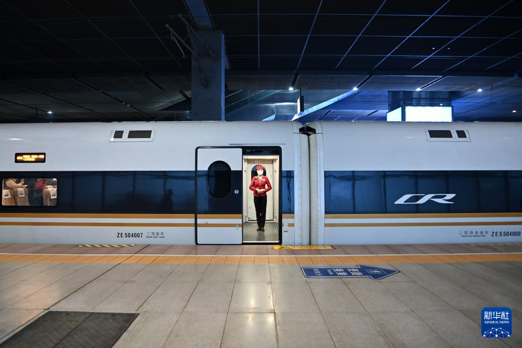 12月18日,G8842次列车停靠在天津西站准备发车。新华社记者 李然 摄