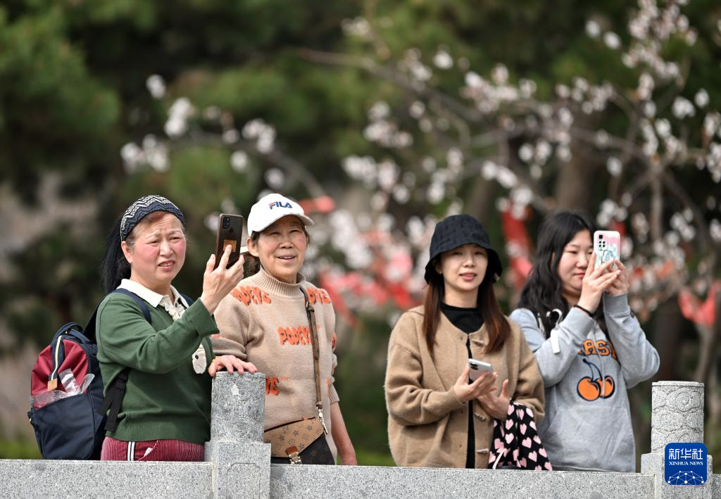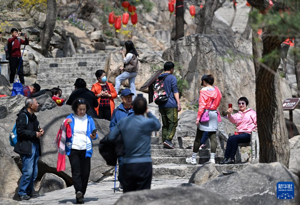 4月3日,游客在天津市蓟州区盘山景区游玩。新华社记者 李然 摄pagebreak