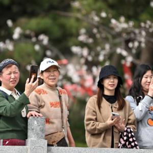 4月3日,游客在天津市蓟州区盘山景区观看演出。新华社记者 李然 摄pagebreak