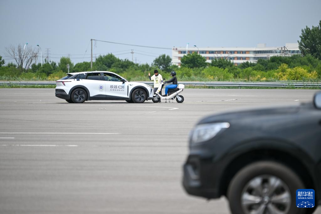 6月14日,在天津(西青)国家级车联网先导区封闭测试场,测试人员准备对一款智能网联汽车进行自动驾驶主动安全功能测试。新华社记者 孙凡越 摄pagebreak
