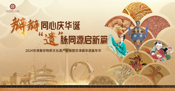 2024京津冀非物质文化遗产联展暨京津冀非遗嘉年华活动由天津市文化和旅游局、北京市文化和旅游局、河北省文化和旅游厅联合天津市河西区人民政府主办,以“瓣瓣同心庆华诞 ‘遗’脉同源启新篇”为主题。