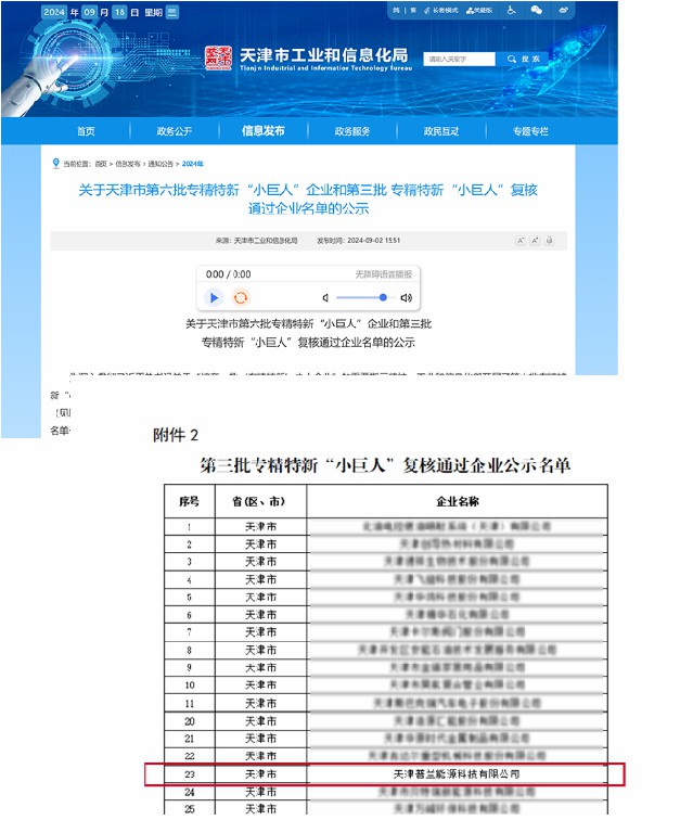新华网天津9月25日电 近日,凭借在细分市场的卓越表现和持续的技术创新,天开津南园企业天津普兰能源科技有限公司顺利通过工业和信息化部复核,再度荣获国家级专精特新“小巨人”荣誉。